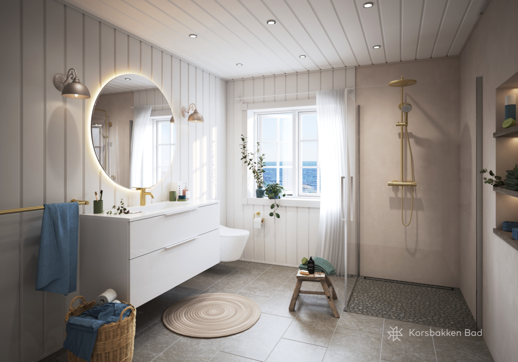 Inneholder følgende produkter: Big servantskap i hvit matt, Gala porselenservant, Grace speil med bakenforeliggende LED-lys, Silhouet servantkran i børstet messing, Klikkventil i børstet messing, Silhouet takdusj i børstet messing, Toto RP toalett, vegghengt TOTO RP toalettsete, Toalettpapirholder i børstet messing, Håndklestang dobbel i børstet messing, Toalettbørstet i børstet messing Ekstra tilbehør: Høyskap Big i hvit matt Young 2.0 slagdører i krom